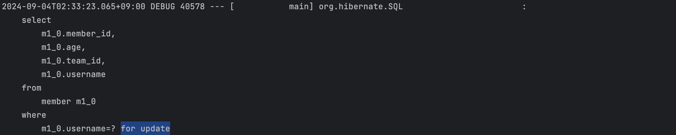List<Member> result = memberRepository.findLockByUsername("member1");